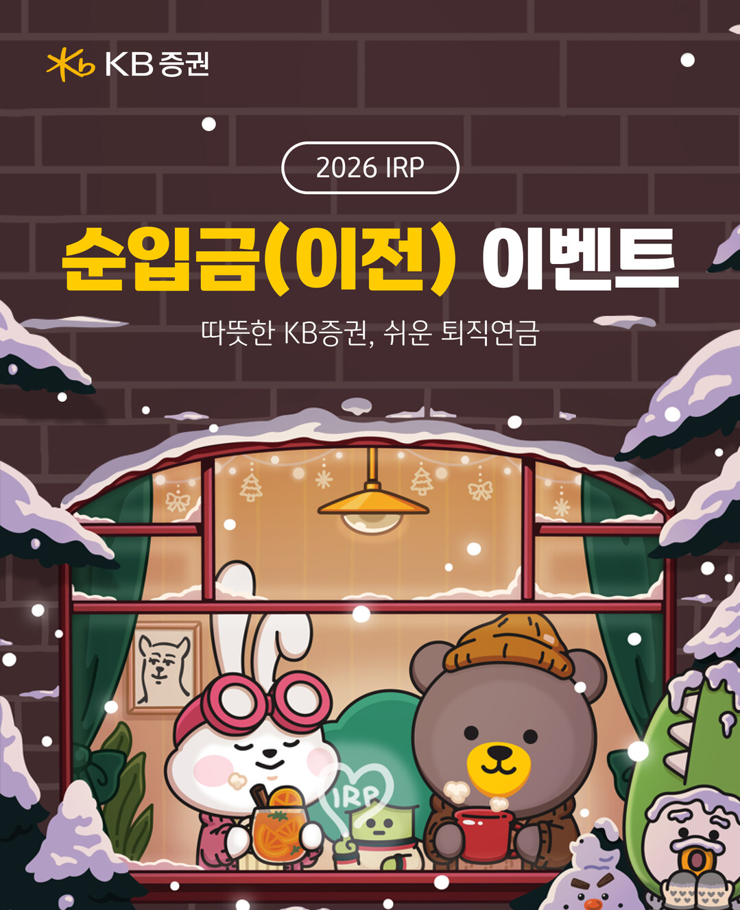 KB증권은 새해를 맞아 개인형 IRP와 연금저축 등 연금자산 투자에 대한 고객 관심 확대에 맞춰 '연금자산 순입금 이벤트'를 진행한다고 2일 밝혔다.