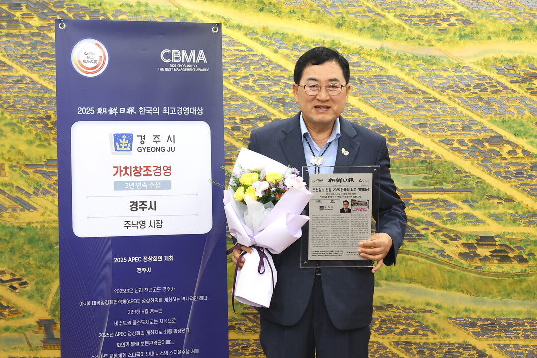 경북 경주시가 16일 서울 더플라자호텔에서 열린 '2025 한국의 최고경영대상' 시상식에서 가치창조경영 부문 대상을 수상하는 등 3년 연속 본상 수상이라는 성과를 이어갔다고 17일 밝혔다.