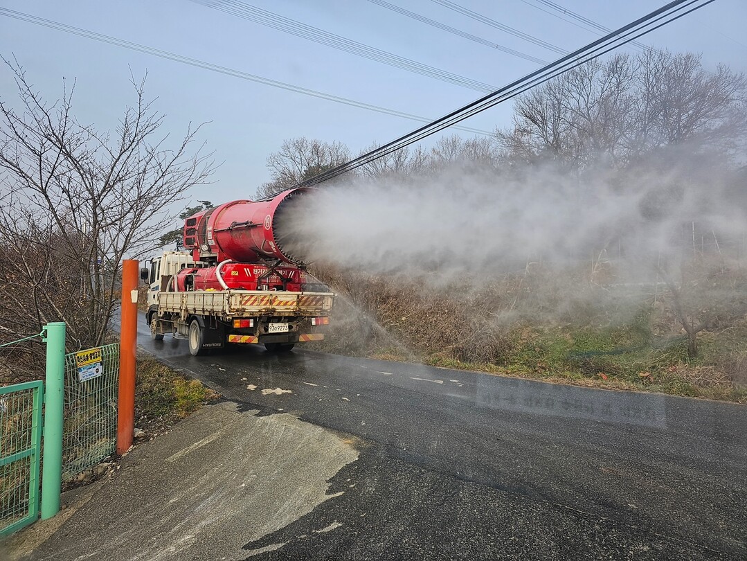 | ▲ 조류인플루엔자 확산을 막기위해 방역중인 방역차량.[충남도 제공] |