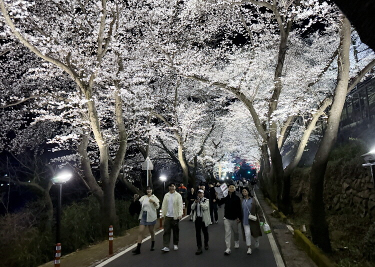 ▲ 하동군 벚꽃길 야간 경관 모습 [하동군 제공]