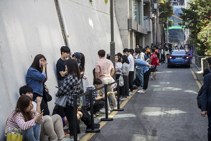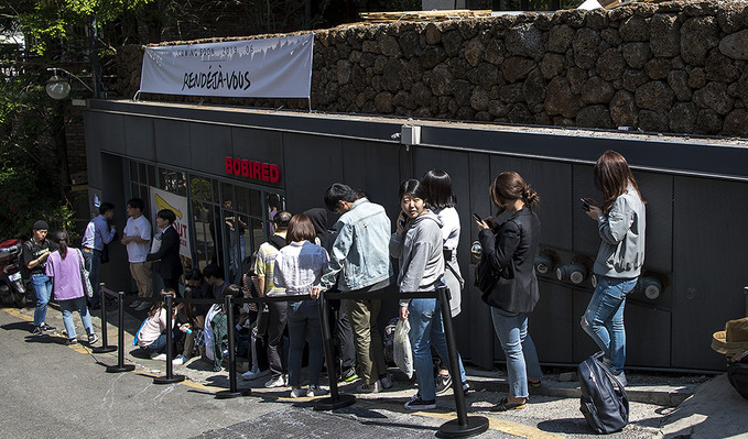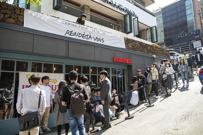 22일 오전 서울 강남구 바비레드 강남점에서 열린 미국 3대 버거로 꼽히는 '인앤아웃 버거' 팝업스토어에서 시민들이 버거를 구매하기 위해 줄을 서고 있다.