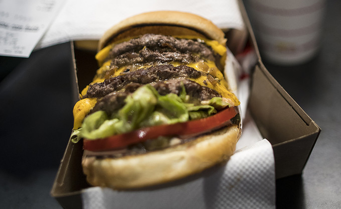 22일 오전 서울 강남구 바비레드 강남점에서 열린 미국 3대 버거로 꼽히는 '인앤아웃 버거' 팝업스토어에서 첫번째로 판매된 인앤아웃 버거의 모습.