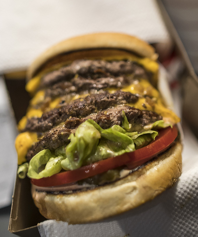 22일 오전 서울 강남구 바비레드 강남점에서 열린 미국 3대 버거로 꼽히는 '인앤아웃 버거' 팝업스토어에서 첫번째로 판매된 인앤아웃 버거의 모습. '인앤아웃 버거' 팝업스토어는 이날 오전 11시부터 오후 2시까지 선착순 한정 판매로 진행될 예정이었다. 인앤아웃 버거 측은 "250명 한정으로 물량을 준했지만 대기표가 일찍 소진됐다"며 예정된 시간보다 1시간 30분 빠른 9시 30분경부터 판매를 시작했다.