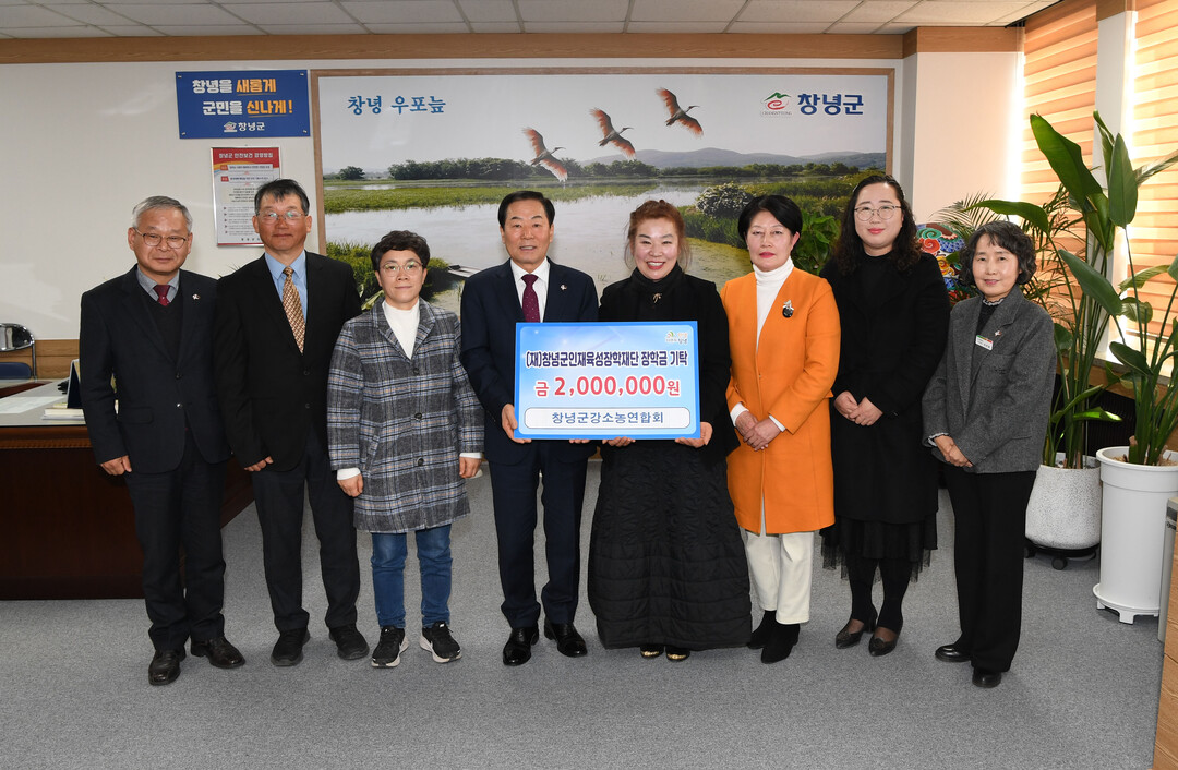 창녕군은 17일 창녕군강소농연합회(대표 심덕순)가 우수 인재 육성을 위한 성금 200만 원을 창녕군에 기탁했다고 밝혔다.