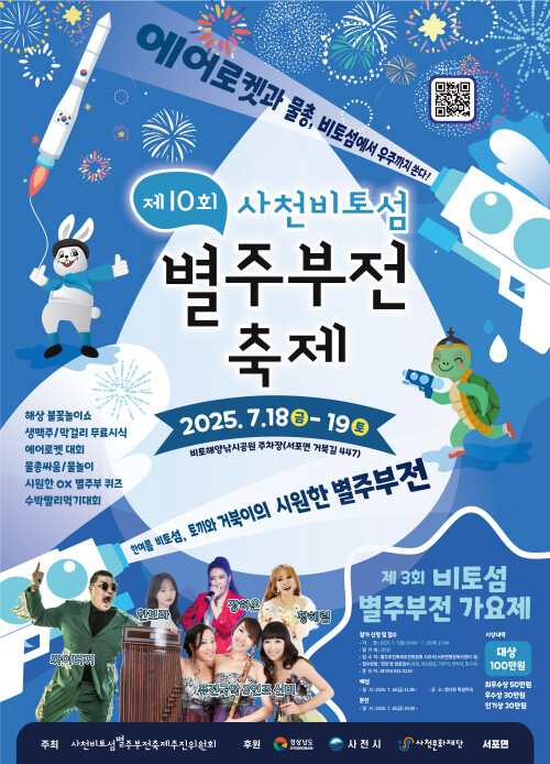 경남 사천시는 18, 19일 이틀 동안 비토해양낚시공원 일원에서 '제10회 비토섬 별주부전 축제'를 개최한다고 7일 밝혔다.