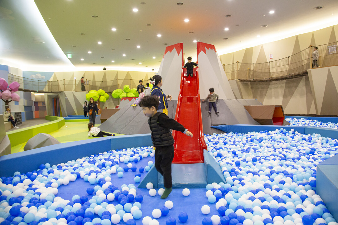 다음은 아이들이 가장 좋아하는 놀이터 '모험의세상'이다. 네모난 돌을 쌓은 '네모네모 광산', 초대형 볼풀에 둘러싸인 '화산 미끄럼틀', 구불구불 말랑말랑한 빙하를 탐험하는 '빙하동굴' 등 다양한 자연지형을 본뜬 안전하고 즐거운 놀이동산이다.