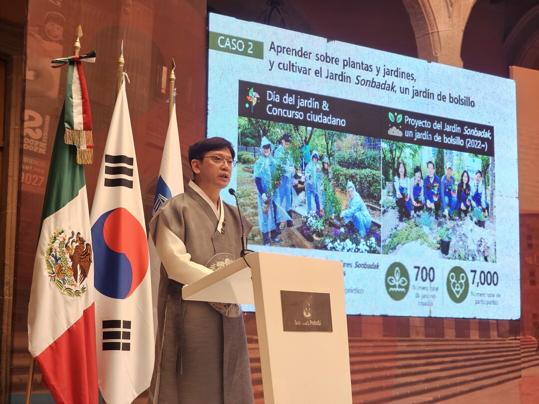 수원시는 현근택 수원시 제2부시장이 '2025 멕시코·라틴아메리카 유네스코 학습도시연맹 콘퍼런스'에서 평생학습을 바탕으로 한 기후행동·탄소중립 실천 우수사례를 발표했다고 14일 밝혔다.