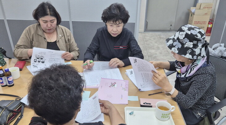 | ▲ 새마을부녀회 회원들이 '효(孝) 편지쓰기 운동'과 관련, 회의를 갖고 있는 모습 [함양군 제공] |