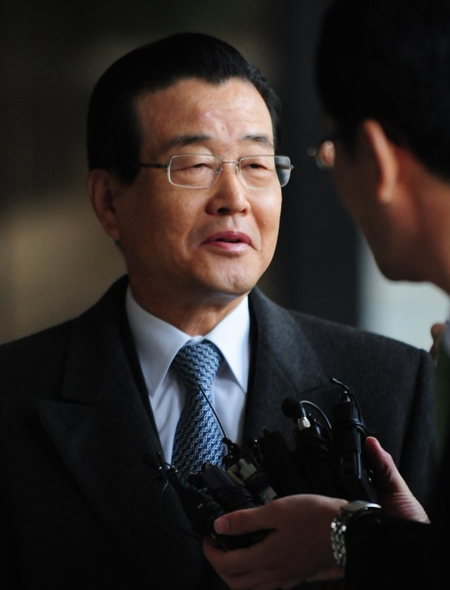 ▲ 지난 2010년 11월30일 라응찬 전 신한금융지주 회장이 서울 중앙지검으로 출두하며 기자들의 질문에 답하고 있다. [뉴시스]