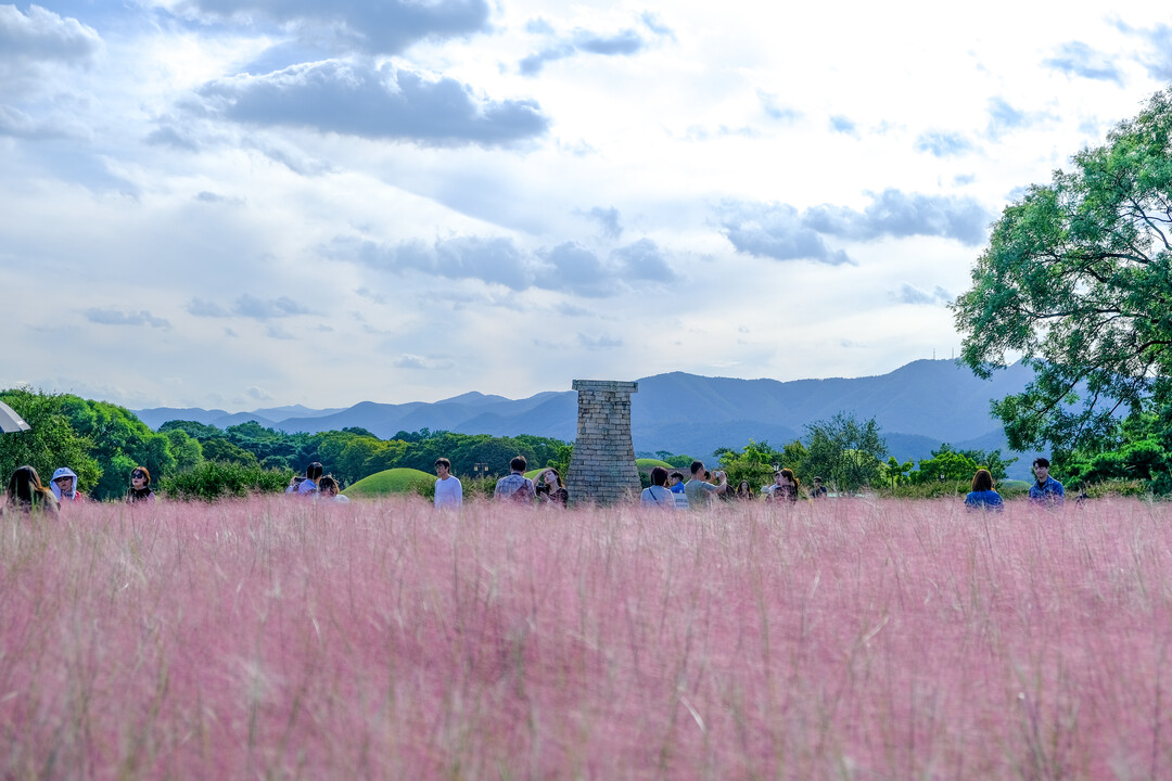 경주의 상징적 건축물인 첨성대는 가을이면 새로운 색으로 물든다. 첨성대 주변에 펼쳐진 핑크뮬리 군락지는 분홍빛 물결을 이루며, 바람에 따라 출렁이는 모습이 마치 분홍빛 안개처럼 신비로워 인생사진을 남기고 싶은 여행객들에게 큰 인기를 끌고 있다.