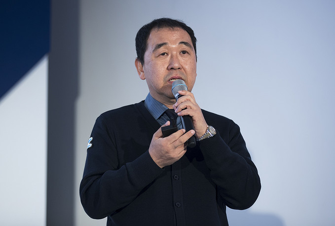 카카오모빌리티 정주환 대표가 20일 오전 서울 성동구 피어 59 스튜디오에서 열린 '웨이고 블루 with 카카오 T' 론칭 기자간담회에서 인사말을 하고 있다.