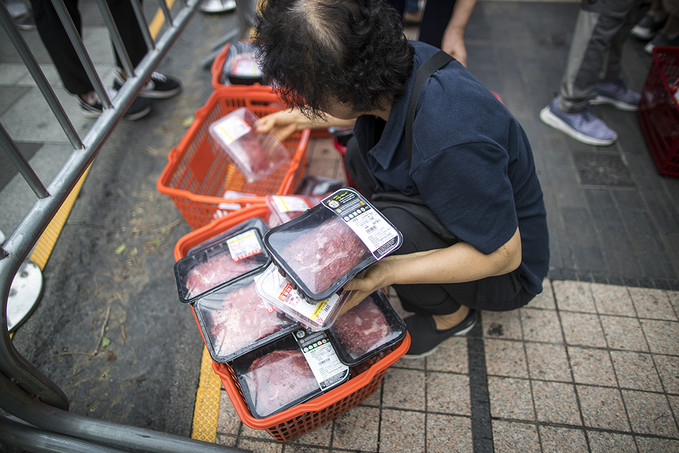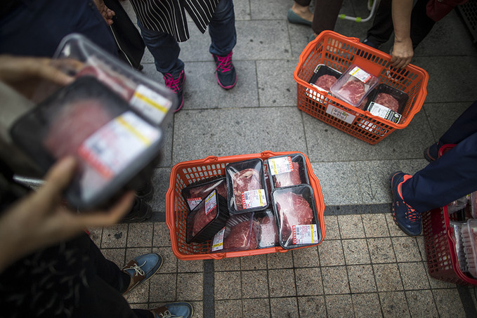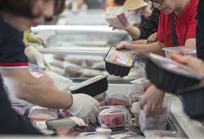 9일 오전 서울 중구 청계광장 소라탑에서 열린 2019 추석맞이 한우직거래 장터에서 시민들이 한우를 구매하고 있다.