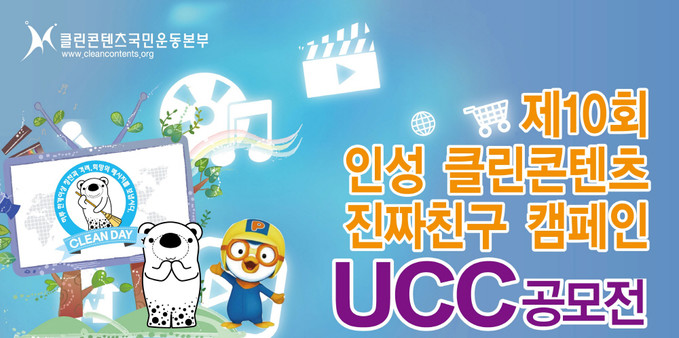 (민)클린콘텐츠국민운동본부를 비롯해 국회 미래정책연구회, KBS미디어, 한국문화콘텐츠라이센싱협회, 한국청소년동아리연맹, 공동주관으로 ‘2018 인성 클린콘텐츠 진짜친구 캠페인 UCC 전국공모전’이 10월 10일부터 전국 규모로 개최된다.