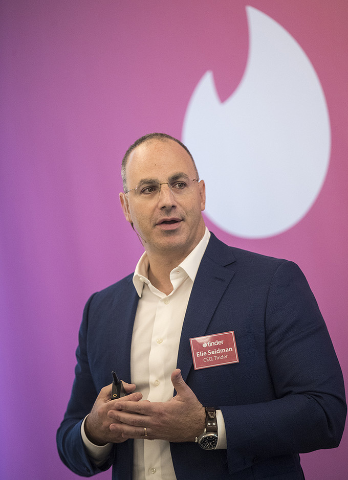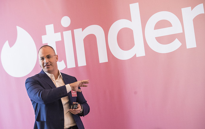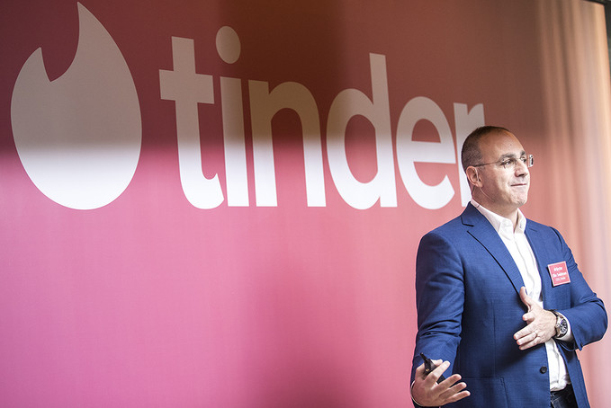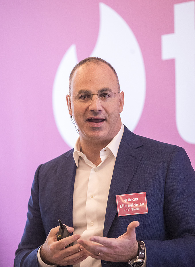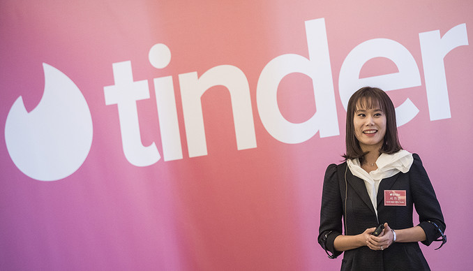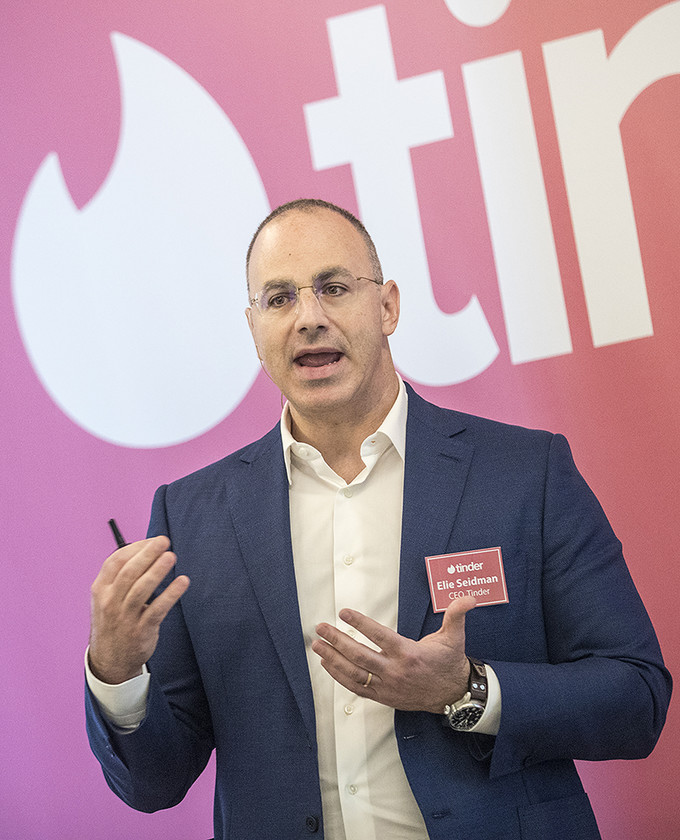 소셜 디스커버리 앱 틴더 CEO인 엘리 사이드먼이 22일 오전 서울 중구 웨스틴 조선호텔에서 열린 내한 기자간담회에서 틴더의 한국 시장에 중요성에 대해 발표를 하고 있다.