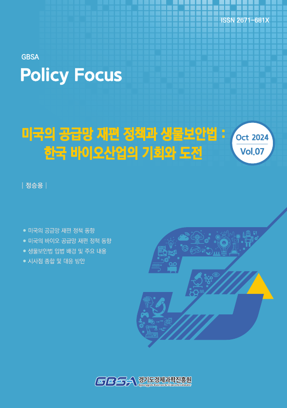 경과원은 같은 날 발간한 '미국의 공급망 재편 정책과 생물보안법: 한국 바이오산업의 기회와 도전' 보고서에서는 현재 미국에서 입법을 추진 중인 생물보안법과 관련해 우리나라 바이오 산업에 미치는 영향을 분석했다.