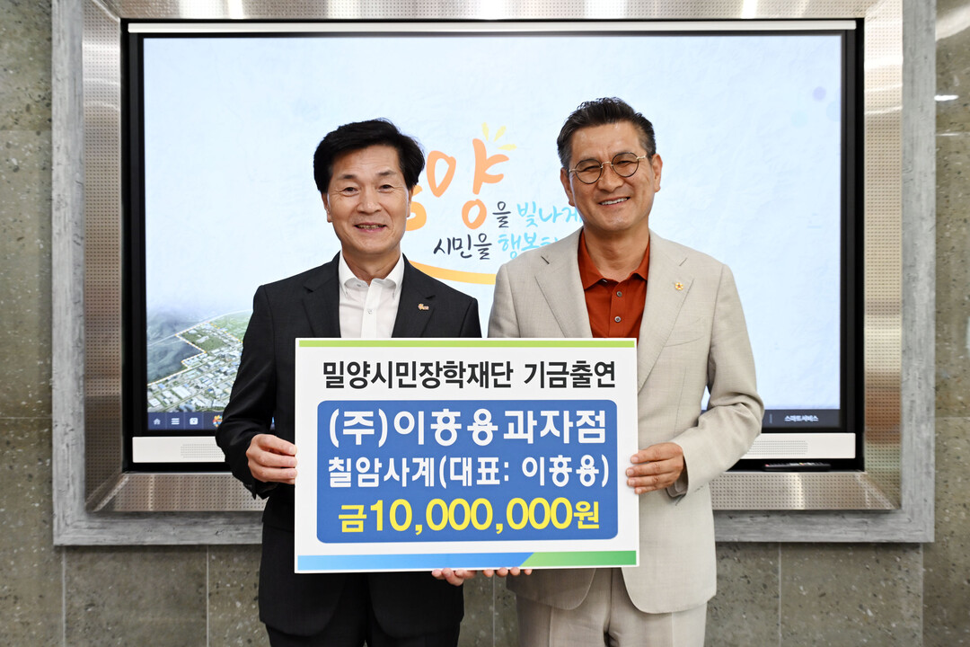 부산 기장군에 위치한 베이커리 복합문화공간 ㈜이흥용과자점 칠암사계(대표 이흥용)는 7일 밀양시민장학재단(이사장 안병구)을 방문해 장학기금 1000만 원을 기탁했다.
