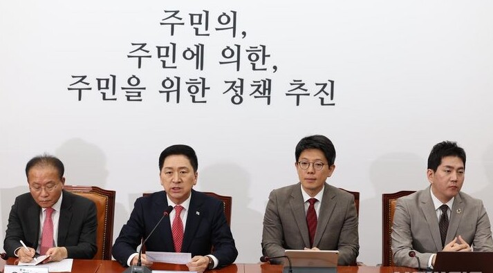 | ▲ 국민의힘 김기현 대표(왼쪽 두번째)가 16일 국회에서 열린 최고위원회의에서 발언하고 있다. [뉴시스] |