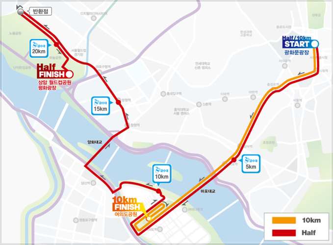 서울지방경찰청은 28일 오전 8시부터 10시 50분까지 1만3000여 명이 참여하는 '제4회 2019 서울하프마라톤대회'가 세종대로, 서소문로, 마포대로, 여의대로, 노들로, 양화대로, 월드컵로 등에서 진행된다고 밝혔다. 대회가 진행되는 동안 해당 구간 교통이 일부 통제될 예정이다.