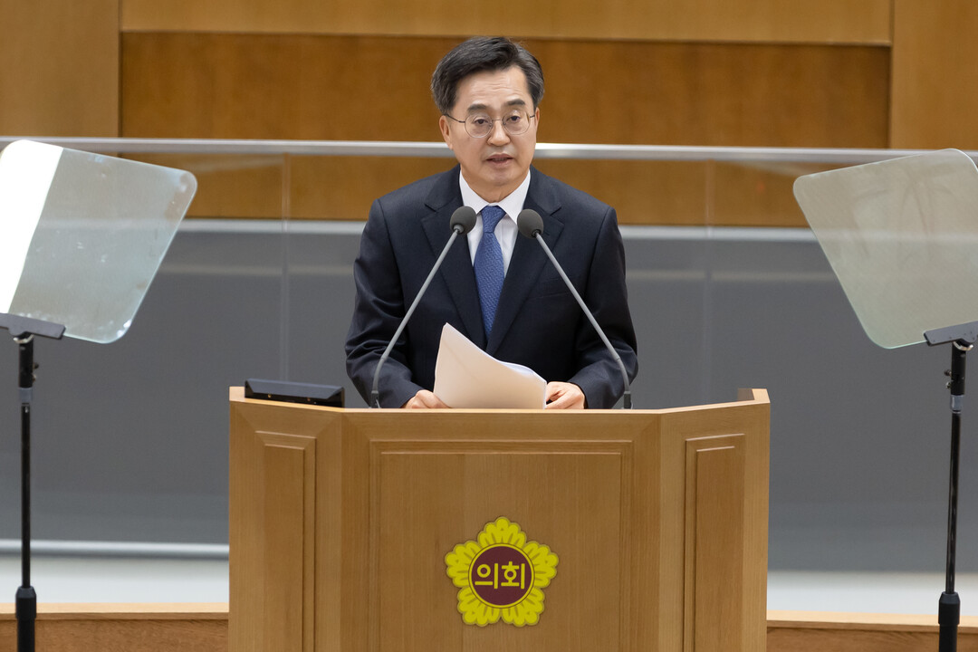 김 지사는 이날 제382회 경기도의회 임시회 제2차 본회의 도정업무보고를 통해 "실물경제와 내수경기는 내일을 장담할 수 없을 만큼 위태롭다. IMF 외환위기, 코로나19 팬데믹 때보다 더 깊은 침체에 빠졌다"면서 이같이 말했다.