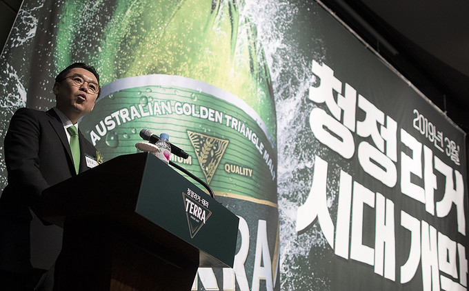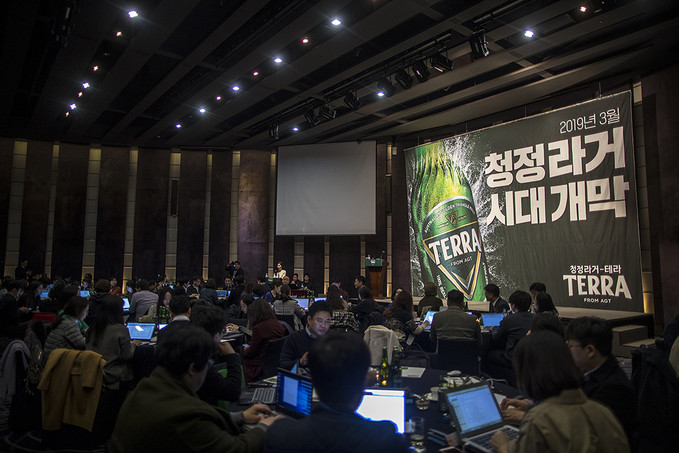 13일 오전 서울 중구 웨스틴조선호텔에서 하이트진로 맥주 신제품 '테라' 출시 기자간담회가 열리고 있다.