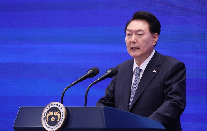 | ▲ 윤석열 대통령이 18일 청와대 영빈관에서 열린 제78주년 경찰의날 기념식에서 축사를 하고 있다. [뉴시스] |