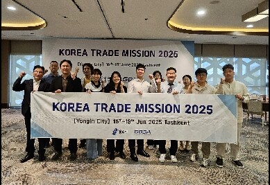 | ▲ 지난 17일 우즈베키스탄 수출상담회에 참석한 용인지역 중소기업 대표 등이 기념촬영을 하고 있다. [용인시 제공] |