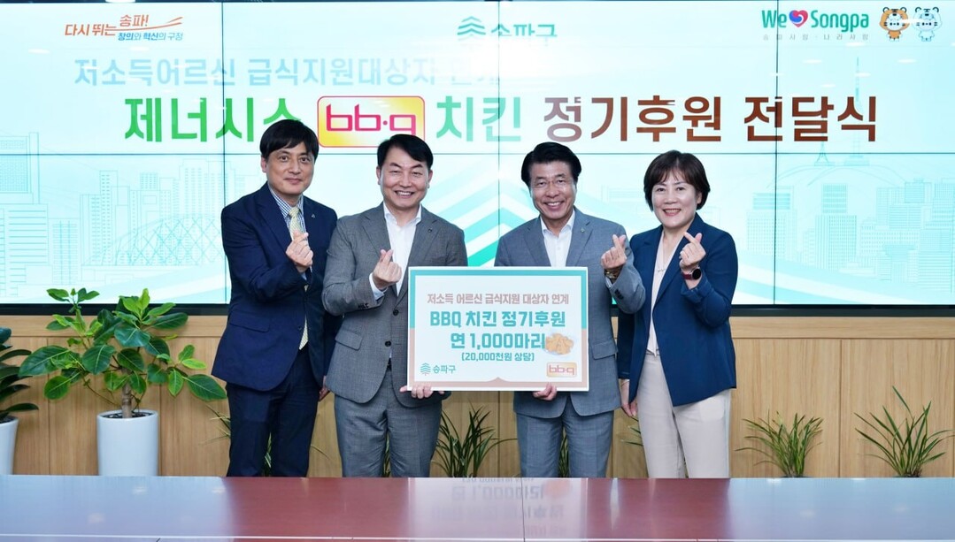 이날 전달식에는 심관섭 제너시스BBQ 대표와 서강석 송파구청장 등이 참석했다.