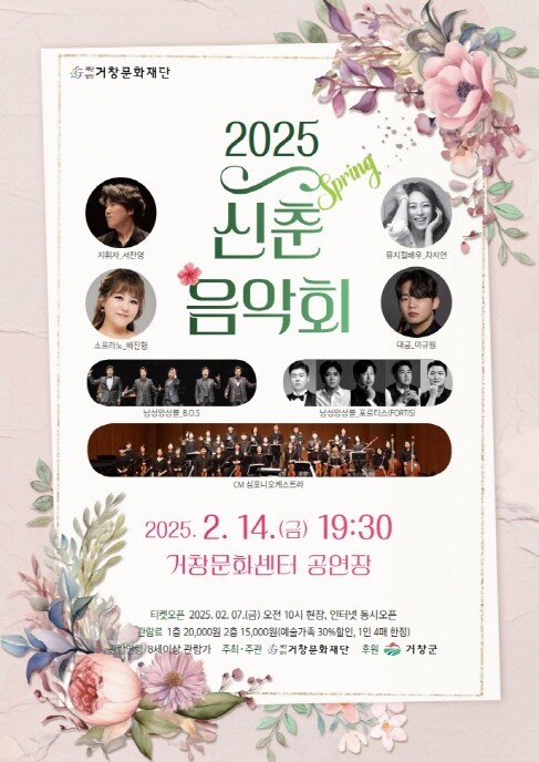 경남 거창문화재단(이사장 구인모 군수)은 2월 14일 오후 7시 30분에 거창문화센터 공연장에서 '2025 신춘음악회'를 개최한다고 24일 밝혔다.