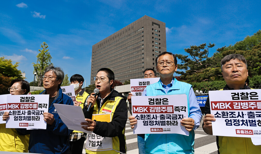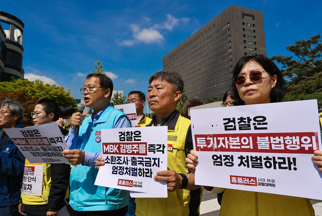 홈플러스 사태의 철저한 진상 규명과 MBK 김병주 회장의 즉각 소환을 촉구하는 기자회견이