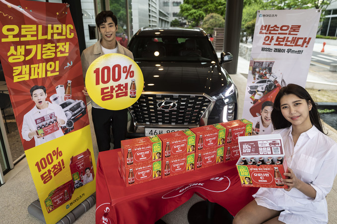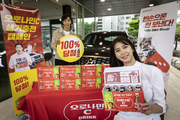 이번 이벤트는 '2019 오로나민C 생기충전 캠페인'의 일환으로 10입 이벤트 패키지 안쪽에 있는 QR코드를 인증해 참여할 수 있다. 경품으로 팰리세이드, 커피머신, 공기청정기 등이 마련됐다.