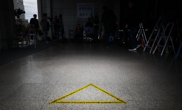 ▲ 3일 서울 서초구 서울중앙지검 현관 앞에서 취재진이 정경심 교수가 조사를 마치고 나오기를 기다리고 있다. [뉴시스]