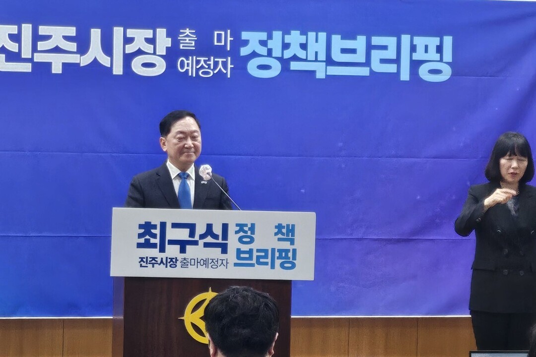 더불어민주당 최구식 진주시장 출마예정자가 3일 진주시청 브리핑룸에서 기자회견을 갖고, '도시공간구조 전면 재검토'를 핵심 공약으로 제시했다.