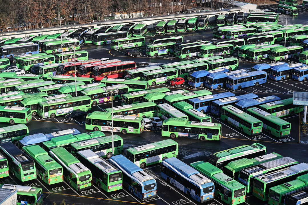 이날 오전 찾은 서울 은평공영차고지에는 운행을 멈춘 버스들이 차고지를 가득 메우고 있었다. 차고지를 찾은 인근 주민들은 운행 중단 사실을 확인한 뒤 발길을 돌리거나, 주변을 순환하는 무료 셔틀버스를 이용해 정상 운행 중인 경기도 버스를 타러 이동하는 모습이었다.