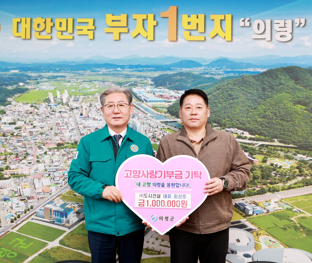㈜도시건설 최상호 대표는 지난달 31일 의령군을 방문해 고향사랑기부금 100만 원을 전달했다.