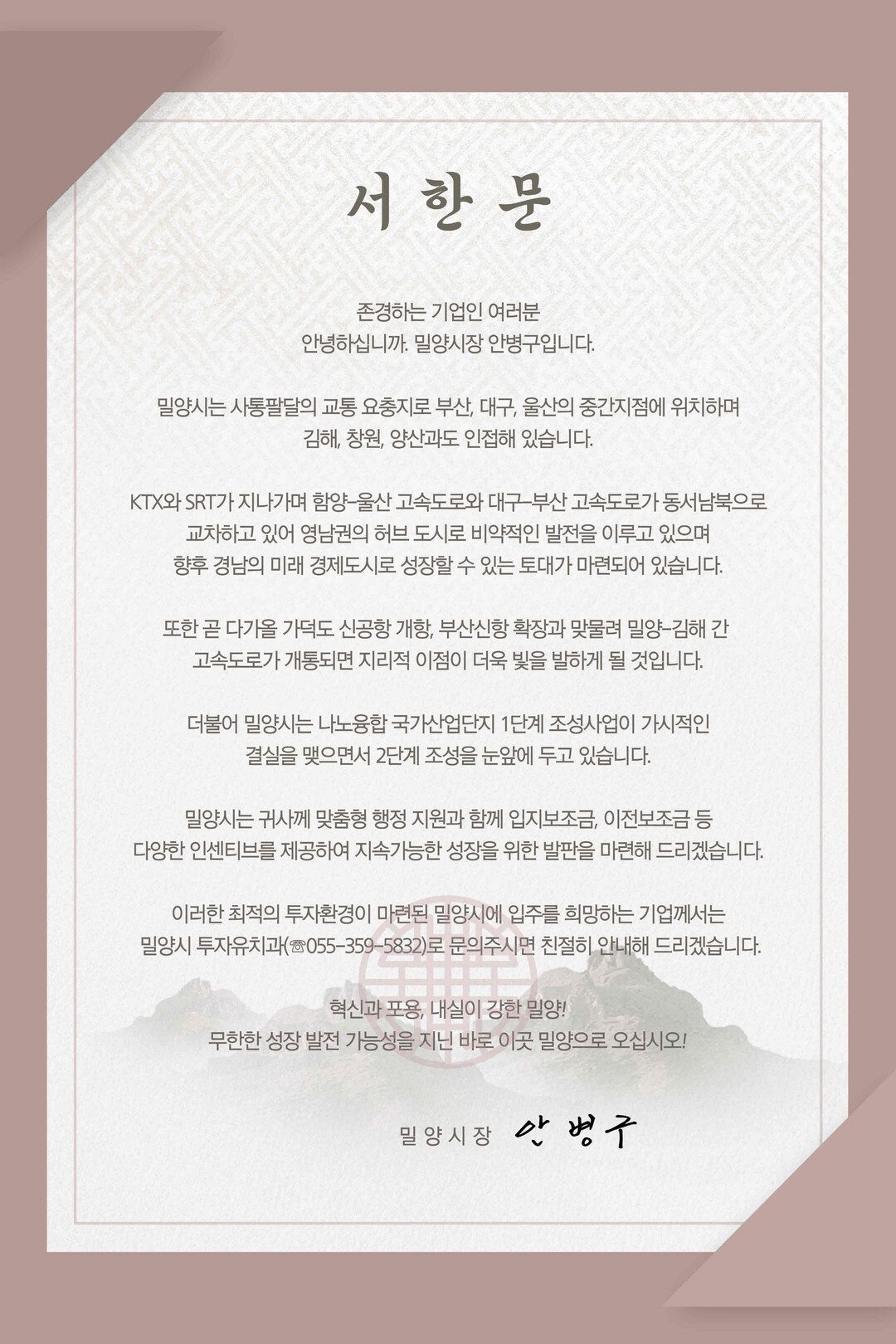 ▲ 밀양시 기업 유치 서한문[밀양시 제공]