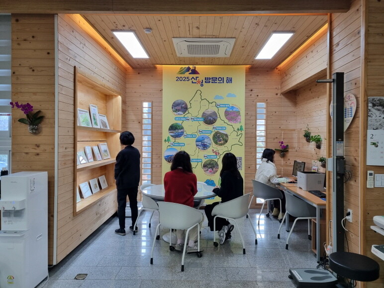 특히 민원인 전용 컴퓨터 2대와 프린터를 편리하게 사용할 수 있도록 구성하는 한편 홍보 공간에는 '2025 산청방문의 해'와 '산청 9경' 관련 자료를 전시해 놨다.