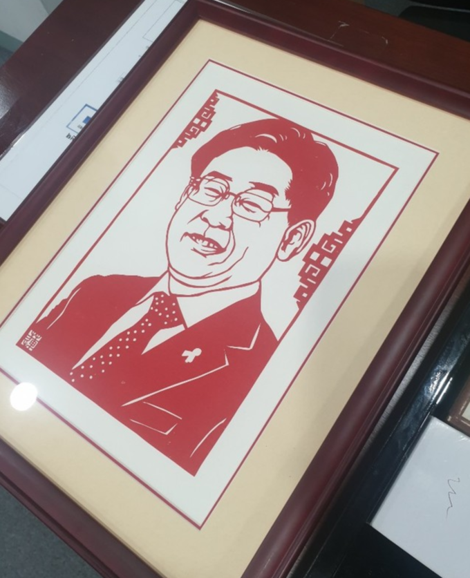 박원순 서울시장이 중국 광둥성 대표단으로부터 이재명 경기도지사의 초상화를 선물 받는 해프닝이 발생했다.