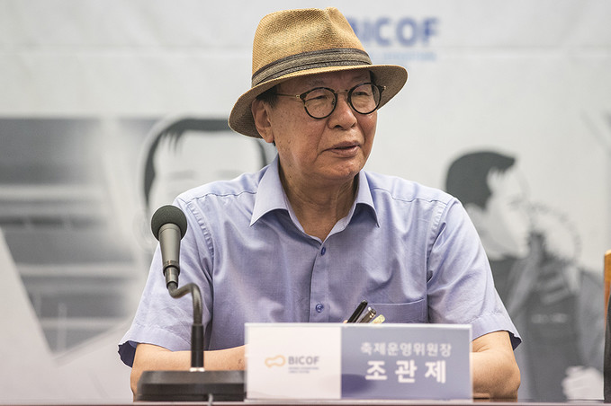 송방호 부천국제만화축제 총괄감독이 10일 오전 서울 중구 프레스센터에서 열린 제22회 부천국제만화축제 공식 기자회견에 참석해 있다.