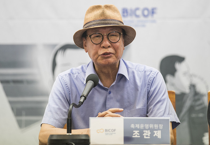 조관제 부천국제만화축제 운영위원장이 10일 오전 서울 중구 프레스센터에서 열린 제22회 부천국제만화축제 공식 기자회견에서 인사말을 하고 있다.