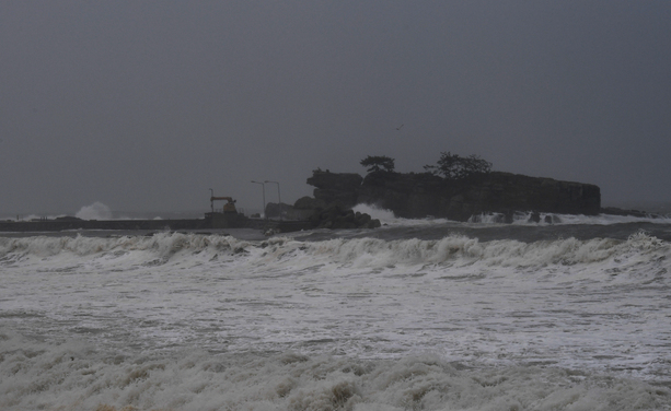 ▲ 20일 오전 제5호 태풍 '다나스(DANAS)'가 북상하고 있는 가운데 경남 남해군 남면인근 해변에 높은 파도가 몰아치고 있다. [뉴시스]
