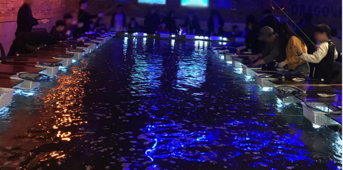 ▲ 서울 시내의 한 낚시카페에서 이용객들이 낚시를 하고 있다. [강혜영 기자]
