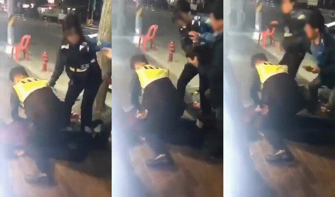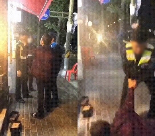 경찰관과 실랑이를 벌이던 두 남성 중 한 명이 남성 경찰관의 뺨을 때리자 남성 경찰관은 곧바로 그의 팔을 꺾어 바닥에 쓰러트리며 제압했다. 제압당한 남성의 일행은 남성 경찰관에게 폭행으로 대응하려 했다.