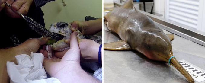 바닷속 플라스틱은 해양 생물의 몸속을 파고들어 생태계를 파괴한다. 세계는 플라스틱 쓰레기로 몸살을 앓고 있다. 2015년 코스타리카의 한 해변에서 코에 빨대가 꽂혀 고통스러워하는 바다거북이 발견됐다. 지난해엔 먹이를 찾으러 나온 북극곰이 검은 플라스틱을 물어뜯고 비닐봉지를 뒤져 전 세계인들에게 충격을 줬다. 바로 지난 1일 이탈리아에서 8m 길이의 임신한 향유고래가 죽은 채로 해변에 밀려왔다. 죽은 고래의 위장에서는 비닐봉지, 그물망, 접시 등 플라스틱 쓰레기가 22kg가량 나왔다. 지난달 15일에도 필리핀 남부 해안에서는 길이 4.6m의 민부리고래가 죽은 채 발견됐다. 이 고래 역시 배 속에서 40kg에 달하는 플라스틱 쓰레기가 나왔다.