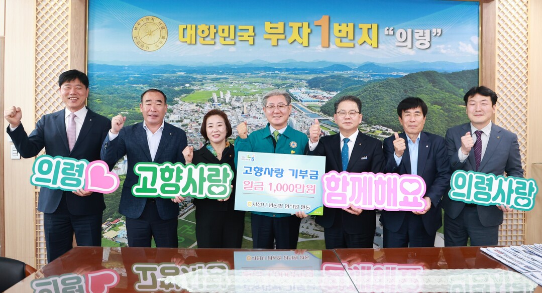 이번 상호기부는 의령군 4개 농협 소속 임직원들과 사천시 8개 농협소속 임직원들의 뜻을 모은 것으로, 두 지역에 각각 고향사랑기부금 1000만원씩을 기탁했다.
