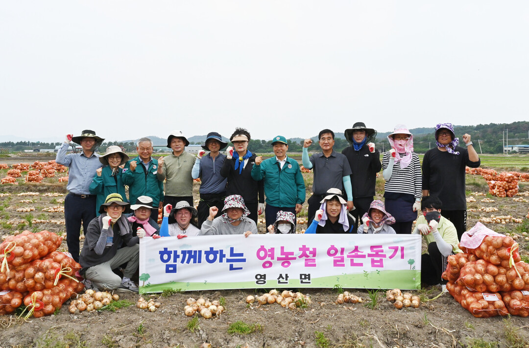 이날 일손돕기에는 영산면과 문화예술과 직원 20여 명이 참여해 무더운 날씨 속에서도 농가의 양파 수확 작업을 도우며 구슬땀을 흘렸다.