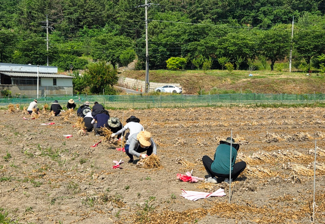창녕군 길곡면, 농번기 맞아 고령농가 마늘 수확 일손돕기 실시