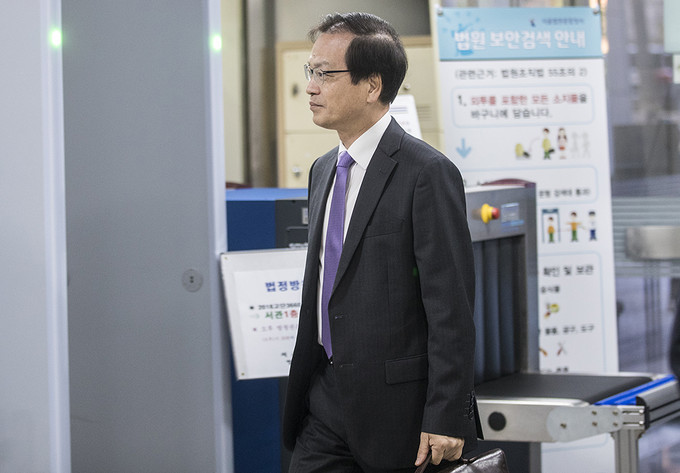▲ 드루킹 사건 수사를 담당했던 허익범 특별검사가 29일 오전 서울 서초구 서울중앙지법에 열린 드루킹 사건 관련 1차 공판에 출석하고 있다. [정병혁 기자]