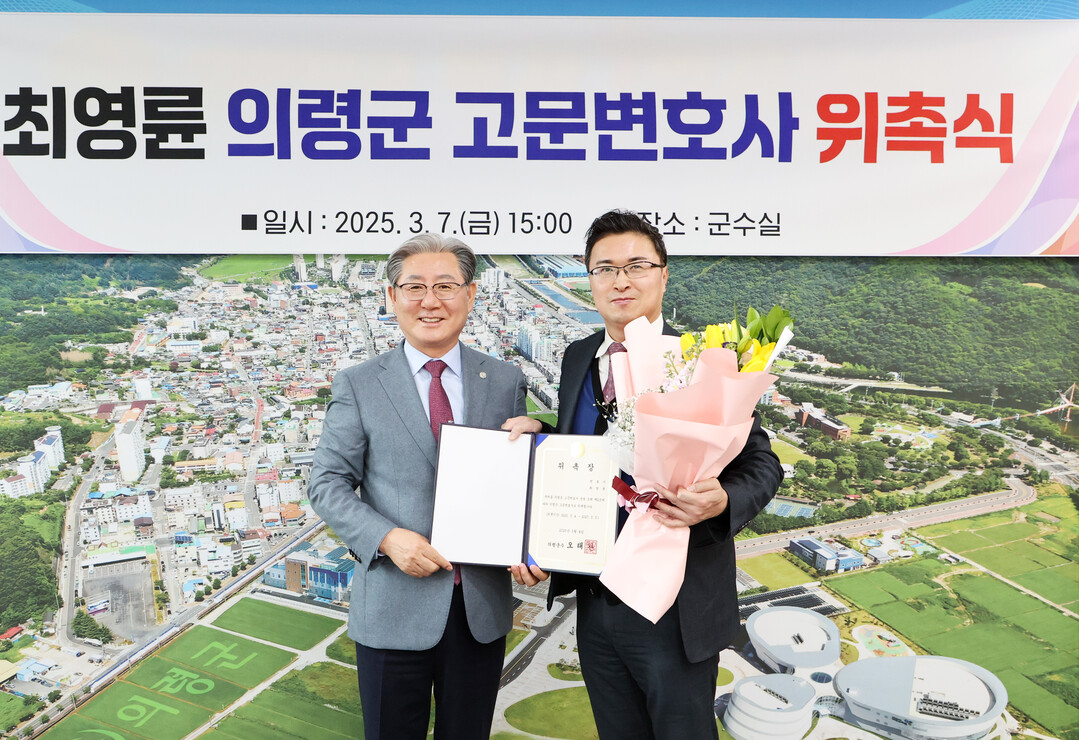 오태완 군수는 최영륜 변호사를 의령군 고문변호사로 신규 위촉하고, 7일 위촉장을 수여했다.