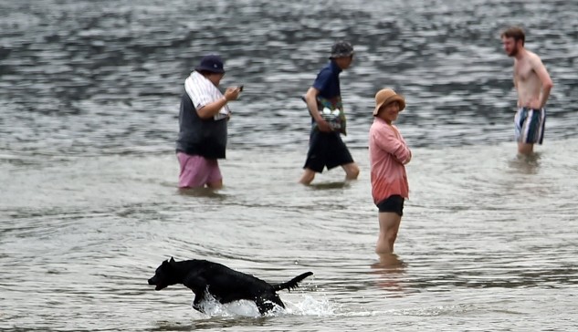 ▲ 더운 날씨를 보인 지난달 30일 제주 서귀포시 중문해수욕장에서 피서객 사이로 개 한 마리가 물놀이를 하고 있다. [뉴시스]