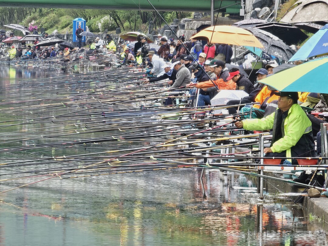 의령천 양옆으로 수백 명이 줄지어 앉아 낚싯대를 던진 장면은 의령천에 핀 철쭉꽃과 함께 장관을 이뤘다. 의령군은 지난해 대회를 위해 민물고기 4000여 마리를 의령천에 풀었다.